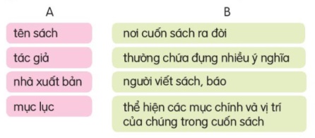 – Từ ngữ chỉ người, chỉ vật: tác giả, cuốn sách, bìa sách