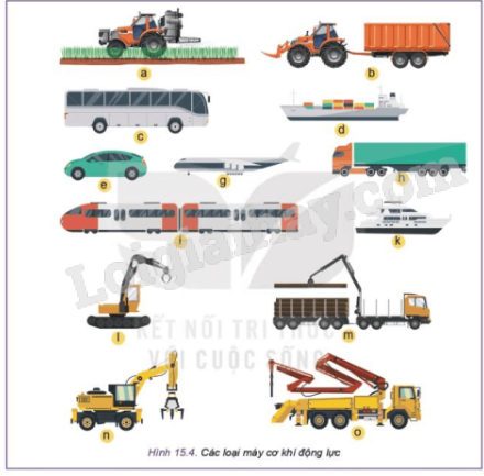 Hãy quan sát và sắp xếp các máy cơ khí động lực trong Hình 15.5 theo các nhóm sau: