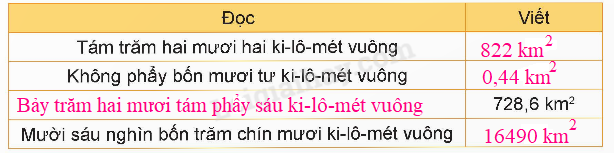 Đọc (hoặc viết) số trước sau đó đọc (hoặc viết) tên đơn vị đo diện tích.