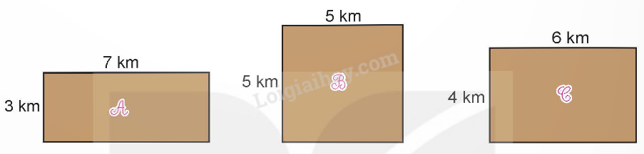 Diện tích mảnh A là: 3 x 7 = 21 (km2)
