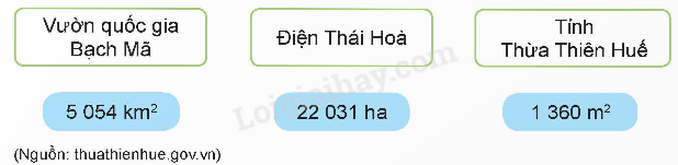 Chọn số đo phù hợp với diện tích của mỗi địa danh dưới đây.