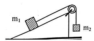 Biết \(\alpha  = {30^0}\), \({m_1} = 1kg;{m_2} – 2kg\). Công của trọng lực của hệ thống khi \({m_1}\) đi lên không ma sát trên mặt phẳng nghiêng được quãng đường \(1m\).