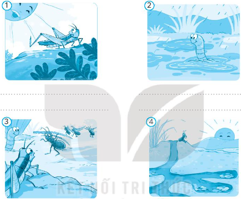– Tranh 4: Kiến ngồi ngắm mặt trời lặn.