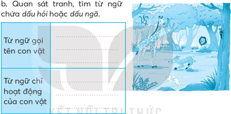 b. Quan sát tranh, tìm từ ngữ chứa dấu hỏi hoặc dấu ngã.
