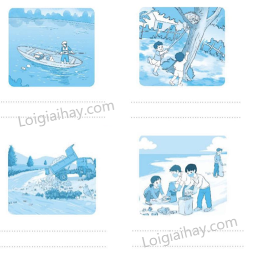 Em quan sát kĩ các bức tranh và viết tên các việc làm, cho biết việc làm đó có ảnh hưởng tốt hay xấu đến môi trường.