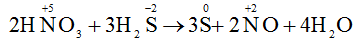 2HNO3 + 3H2S → 3S + 2NO + 4H2O
