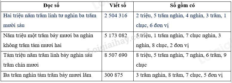 – Viết số lần lượt từ hàng triệu, hàng trăm nghìn, hàng chục nghìn, hàng nghìn, hàng trăm, hàng chục, hàng đơn vị