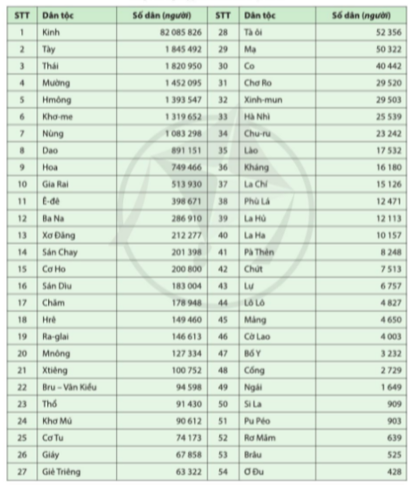 Nhận xét về cơ cấu dân số theo dân tộc ở Việt Nam hiện nay: