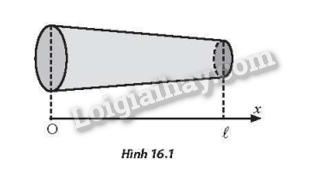 Một đoạn dây kim loại đồng chất có đường kính tiết diện giảm dần theo chiều dài l của dây nằm dọc theo hướng trục Ox như Hình 16.1 .