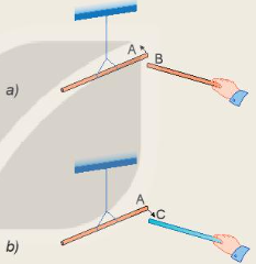 a) Dùng len cọ xát một đầu thanh nhựa B rồi đưa lại gần đầu đã được cọ xát của thanh nhựa A (Hình 16.1a).