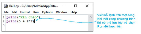 Mở phần mềm soạn thảo chương trình Python và soạn thảo câu lệnh