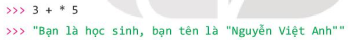 – Python tự nhận biết kiểu dữ liệu và thực hiện các phép toán ngay trên dòng lệnh