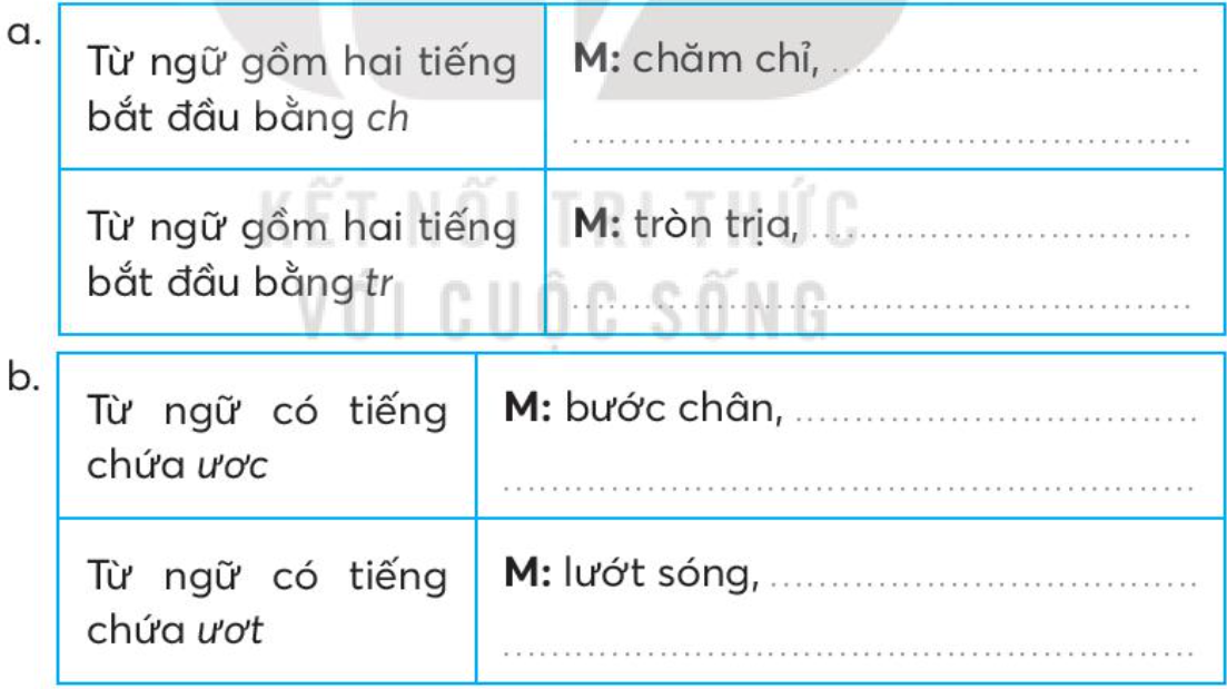 Tìm 2 – 3 từ ngữ và viết vào chỗ trống: