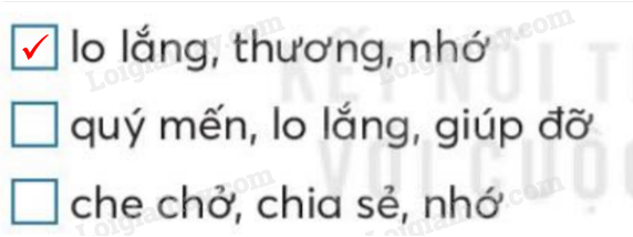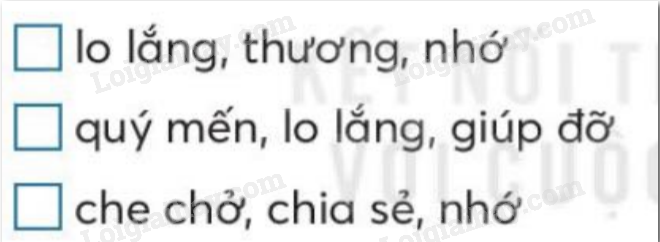 Đánh dấu vào ô trống trước các từ ngữ chỉ tình cảm của dê trắng dành cho bê vàng.
