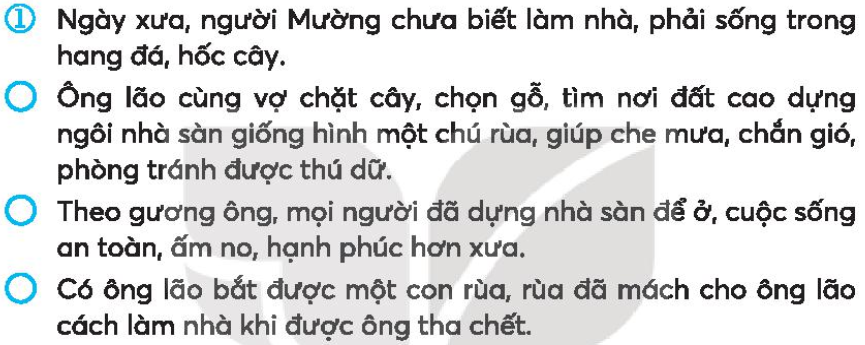 Đánh số thứ tự vào ô trống đúng theo trình tự các sự việc trong câu chuyện Sự tích nhà sàn