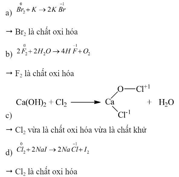 Dựa vào theo chiều tăng dần của điện tích hạt nhân, tính oxi hóa của các nguyên tố trong cùng 1 nhóm giảm dần: F2 > Cl2 > Br2 > I2