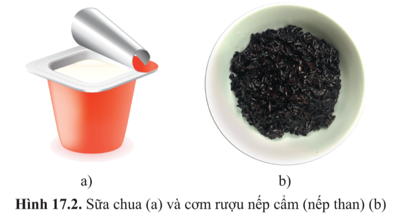 Trong sữa chua có vi khuẩn lactic, trong cơm rượu nếp có nấm men (hình 17.2). Em có thể quan sát chúng bằng cách nào? Tại sao?