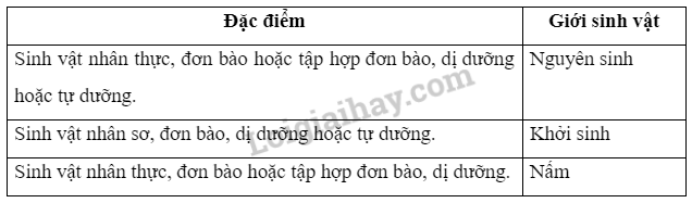 Đặc điểm của các nhóm sinh vật: