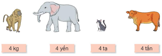 – Đổi đơn vị cân nặng của các con vật về kg