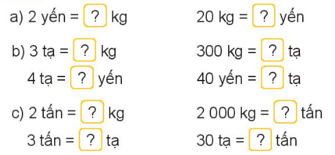 – Dựa vào các cách đổi: 1 tạ = 100kg; 1 yến = 10 kg