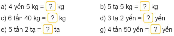 g) 4 tấn 50 yến = 450 yến