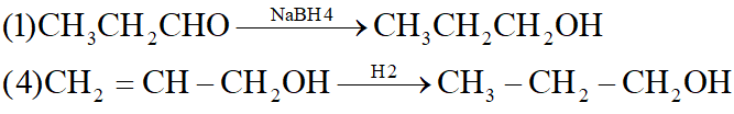 Trong các chất sau: (1)CH3CH2CHO, (2) CH3CH(OH)CH3, (3) (CH3)2CHCHO, (4) CH2=CHCH2OH ,những chất nào phản ứng với H2 hoặc sinh ra cùng một sản phẩm NaBH4?