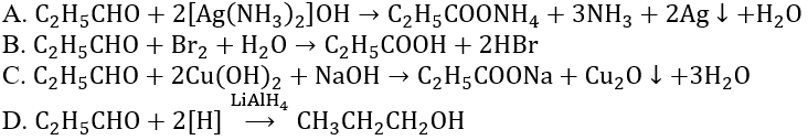 Phản ứng nào sau đây thể hiện tính oxi hoá của propanal?