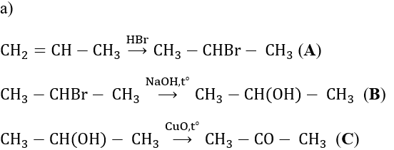 a) Hoàn thành sơ đồ chuyển hoá trên, biết các chất A, B, C đều là chất hữu cơ và đều là sản phẩm chính của các phản ứng.