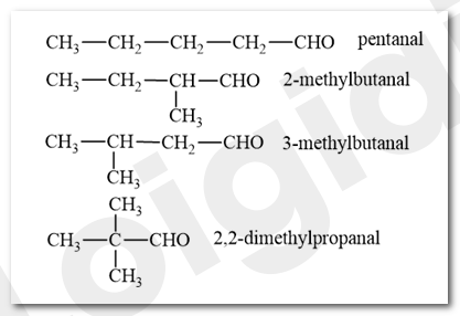 Viết công thức cấu tạo và gọi tên thay thế các aldehyde có cùng công thức C5H10O.