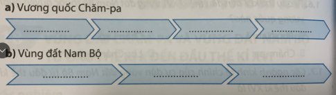 Bài tập 1. Hoàn thiện sơ đồ khái quát về diễn biến chính trị của Vương quốc Chăm-pa từ thế kỉ X đến đầu thế kỉ XVI và vùng đất Nam Bộ từ đầu thế kỉ X đến đầu thế kỉ XVI (theo mẫu dưới đây).