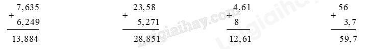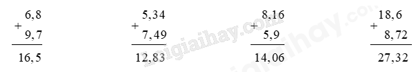 – Viết dấu phẩy ở tổng thẳng cột với các dấu phẩy ở hai số hạng.