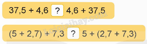 a) Áp dụng tính chất giáo hoán, kết hợp của phép cộng rồi điền dấu thích hợp.