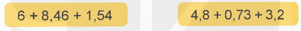 4,8 + 0,73 + 3,2 = (4,8 + 3,2) + 0,73 = 8 + 0,73 = 8,73