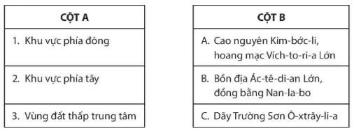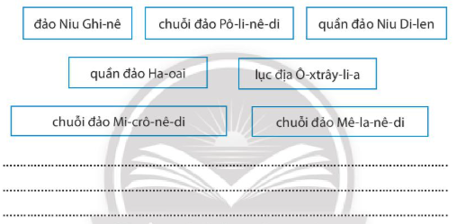 Hãy lựa chọn các cụm từ chỉ các bộ phận chính của châu Đại Dương từ các ô bên dưới và ghi vào chỗ trống (…).