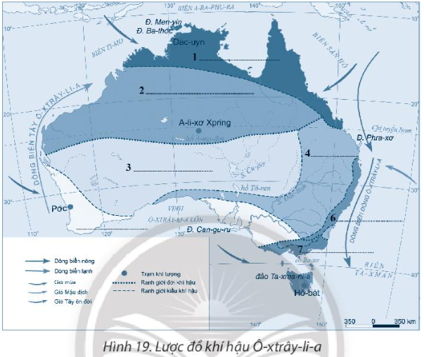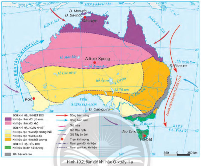 Em hãy dựa vào hình 19.2 và phần đặc điểm khí hậu châu Đại Dương.