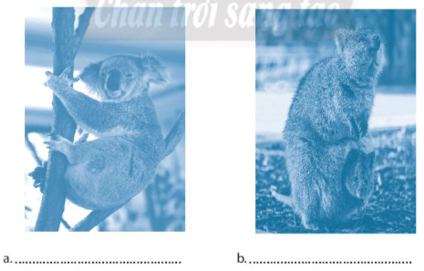 Hãy điền tên các loài động vật đặc hữu: gấu túi, căng-gu-ru, thú mỏ vịt, chuột túi vào chỗ trống (…) của các hình dưới đây cho phù hợp.