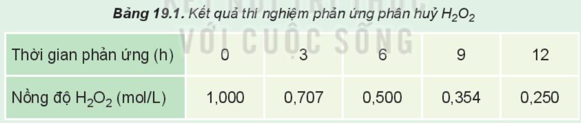 Kết quả thí nghiệm đo nồng độ H2O2 tại các thời điểm khác nhau được trình bày trên Bảng 19.1