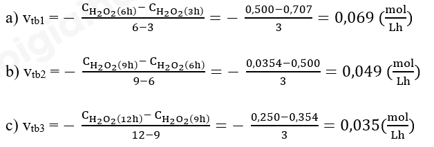 (Dấu “ – “ thể hiện rằng nồng độ H2O2 giảm dần khi phản ứng xảy ra.)
