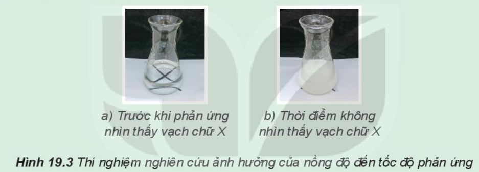 Chuẩn bị:  Các dung dịch Na2SO­3 0,05 M, Na2SO­3 0,10 M, Na2SO­3 0,30 M, H2SO4 0,5 M; 3 bình tam giác, đồng hồ bấm giờ, tờ giấy trắng có kẻ chữ X.