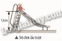 Một em bé có khối lượng 25 kg bắt đầu trượt từ đỉnh cầu trượt có độ cao 1,6 m so với mặt đất với tốc độ ban đầu bằng không. Chọn gốc thế năng tại mặt đất.