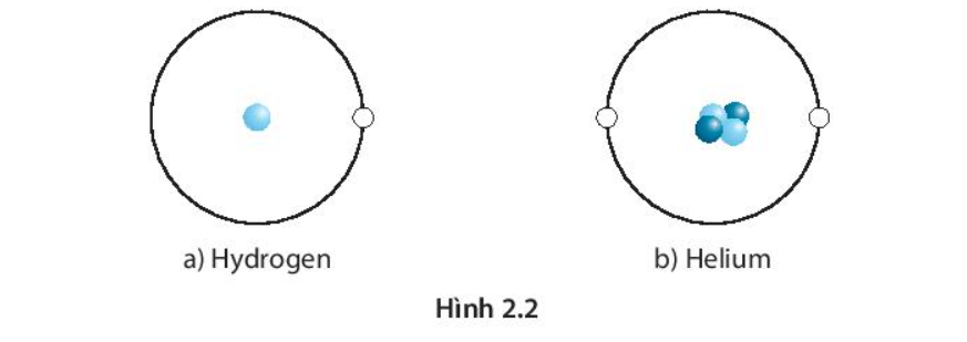 – Ví dụ về nguyên tử He (ở Hình 2.2) có 2 electron ở vỏ electron, 2 proton và 2 neutron ở hạt nhân.