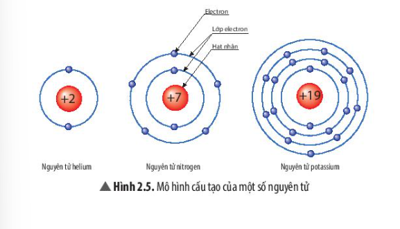 Quan sát Hình 2.5, hãy cho biết nguyên tử nitrogen và potassium có bao nhiêu