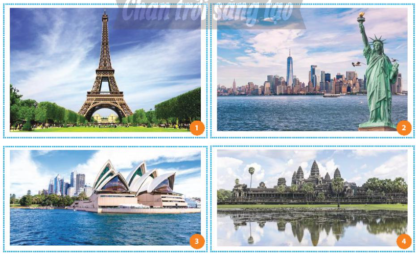 Em hãy kể tên các quốc gia gắn liền với biểu tượng văn hoá, du lịch trong các hình ảnh dưới đây và chia sẻ hiểu biết về các biểu tượng đó.