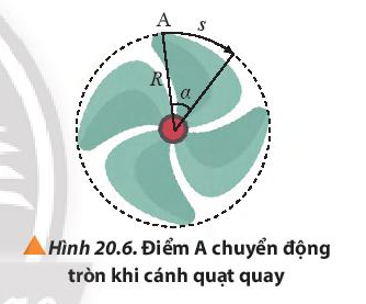 3. Khi cánh quạt trần quay một góc α, điểm A trên cánh quạt đi quãng đường s dài bằng bao nhiêu (Hình 20.6)?