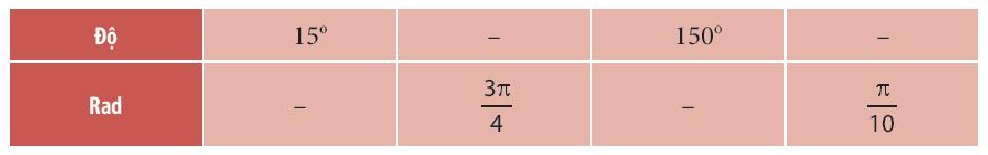 Hãy xác định số đo góc đặc biệt theo radian.