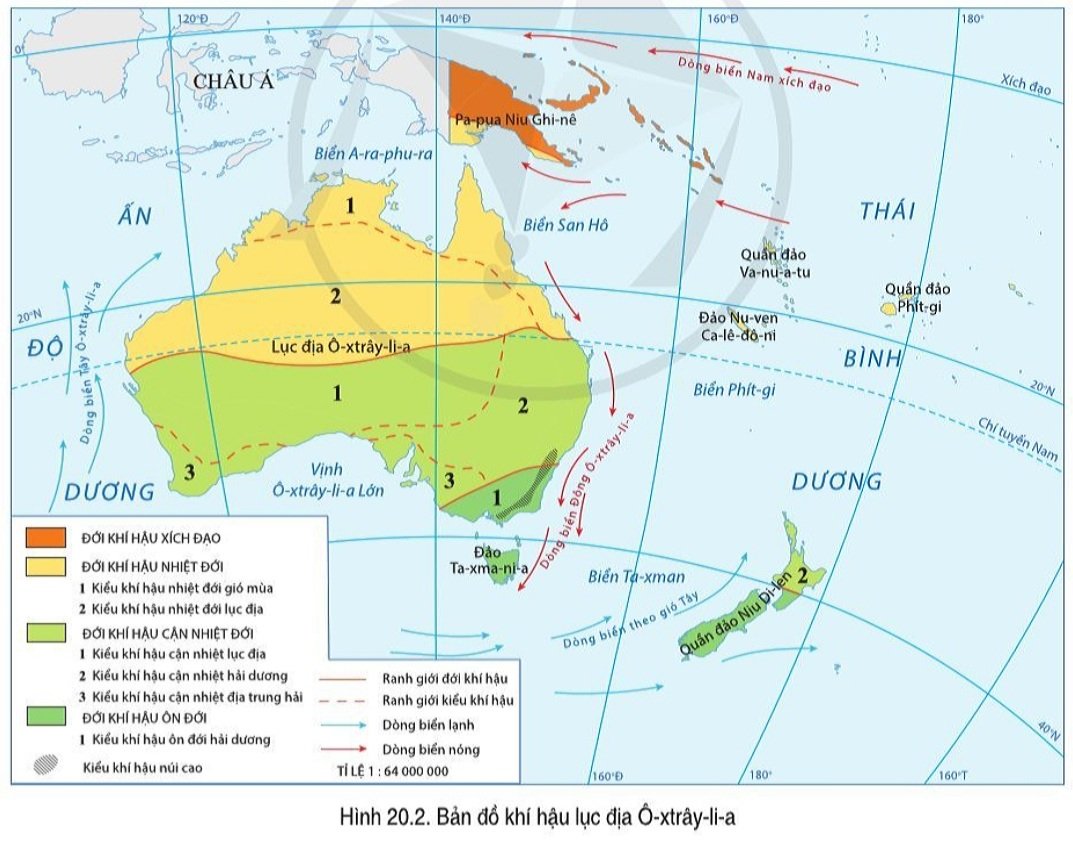 Đọc thông tin mục “Đặc điểm thiên nhiên của các đảo, quần đảo và lục địa Ô-xtrây-li-a” và quan sát hình 20.1.