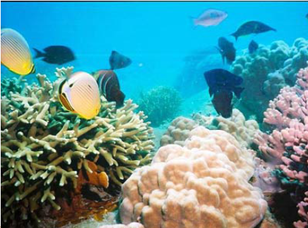 San hô là thắng cảnh ở châu Đại Dương, nước biển ở đây trong suốt như pha lê là điều kiện thuận lợi cho các loài san hô sinh sống và phát triển. San hô còn là môi trường sống của các loài động vật dưới nước.