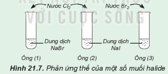 – Lấy khoảng 2 mL dung dịch NaBr vào ống nghiệm (1), 2 mL dung dịch NaI vào mỗi ống nghiệm (2) và (3)