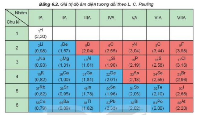– Độ âm điện là đại lượng đặc trưng cho khả năng hút electron của nguyên tử