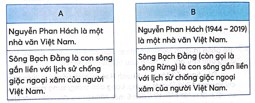 Các câu ở cột B có dấu ngoặc đơn chỉ chú thích cho chủ ngữ của câu.